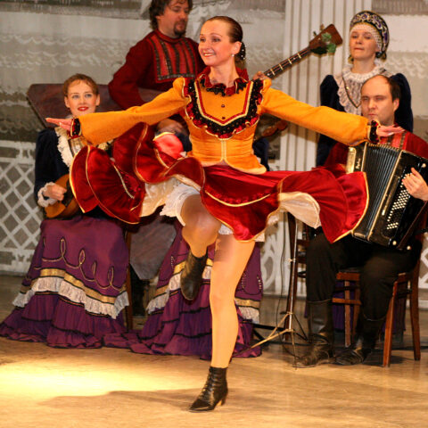 В программе: русские и казачьи песни и пляски, хореографические миниатюры и танцы разных регионов России в исполнении профессиональных артистов казачьего ансамбля им. Владимира Драчева и ансамбля танца «Звезды Петербурга»